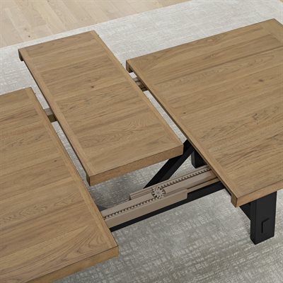 The Charleston dining collection blends farmhouse craftsmanship with modern style in a warm mix of natural hickory brown and bold black finishes. Trestle tables feature faux mortise-and-tenon joinery that nods to traditional woodworking, while smooth extension mechanisms make them easy to expand for gatherings. The Windsor chair’s contoured seat offers lasting comfort, and the coordinating server adds generous storage with paneled doors and metal bar hardware. Built from hickory veneers and hardwood solids, Charleston delivers rustic-modern character and durable design made for everyday dining.