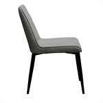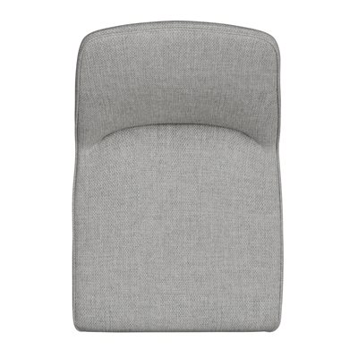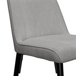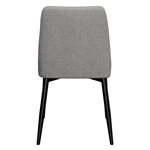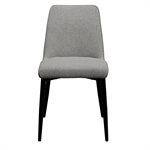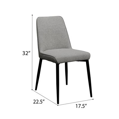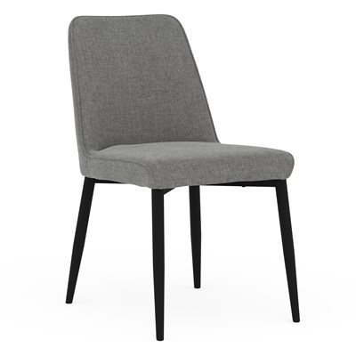 Geometric lines and refined surfaces define the modern profile of the Trista dining collection. A 63-inch table top in marbled white features a sleek Smart Top surface that resists heat, stains, and scratches, making it ideal for everyday dining or stylish entertaining. Angular black metal legs intersect beneath the surface in an architectural base that draws the eye and anchors the design. Coordinating chairs in soft gray polyester feature a low-profile silhouette with gently curved backs and slender black metal legs, providing a subtle contrast to the table’s bold presence. Whether used in a compact dining area or an open-concept space, Trista blends clean lines with durability for a polished, contemporary look.