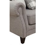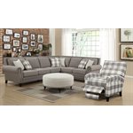 If your lifestyle is where traditional and country cottage meet, the Willow Creek collection is for you! Elegant features like nailhead trim, rolled arms on the sectional and pushback chair, and wheeled ornamental feet on the round ottoman are clothed in the casual comfort of pebbled brown, stripes, and gingham. Give your home an easy update with the eclectic style of Willow Creek.
