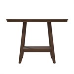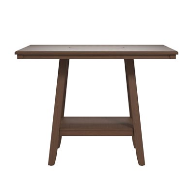 The transitional Seneca collection hosts a unique blend of features and seating options. A delightful rich brown finish on walnut veneers forms a quarter-turned pattern on the tabletop, culminating in the built-in 18” lazy Susan. The tapered frame spreads out to encompass a lower shelf for extra storage. Seating with light tan upholstery and gently curved backs decorated with nailhead trim, you can stay more traditional with just stools or more casual by mixing in a bench or two. Accentuate your personal style and give the Seneca a whirl.