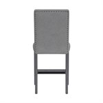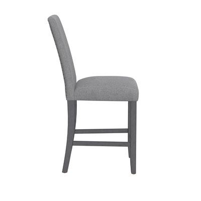 The transitional Seneca collection hosts a unique blend of features and seating options. A delightful medium gray finish on walnut veneers forms a quarter-turned pattern on the tabletop, culminating in the built-in 18” lazy Susan. The tapered frame spreads out to encompass a lower shelf for extra storage. Seating with light gray upholstery and gently curved backs decorated with nailhead trim, you can stay more traditional with just stools or more casual by mixing in a bench or two. Accentuate your personal style and give the Seneca a whirl.