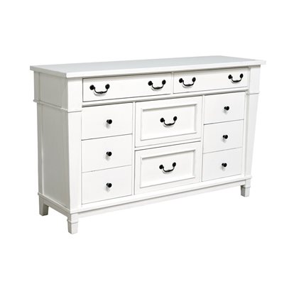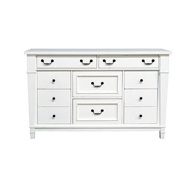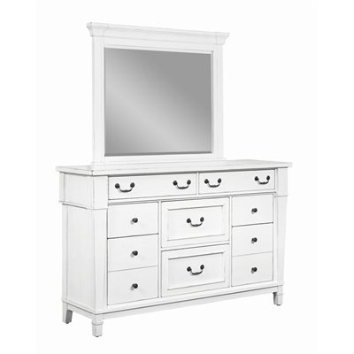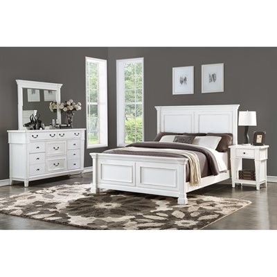 Complete your relaxing retreat with the Stoney Creek bedroom collection. This traditional bedroom set offers large-scale designs with a textured, antique white finish. Antiqued, blackened metal hardware and tapered leg detailing adds a little modern farmhouse charm to your home.