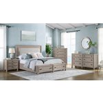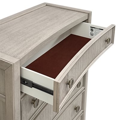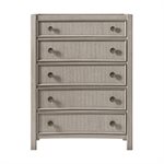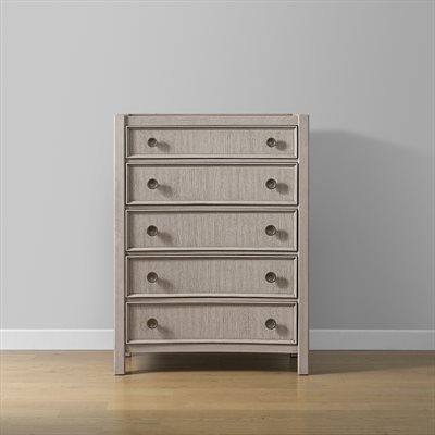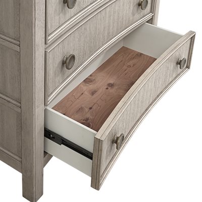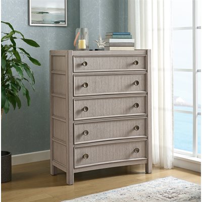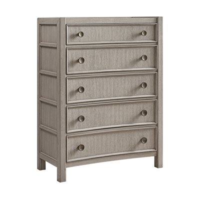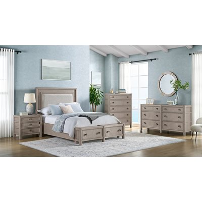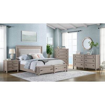 Breezy and refined, the Coronado bedroom collection brings the tranquility of waterside living indoors. Crafted with vertical oak veneers in a light khaki finish, each piece highlights the wood’s natural grain and soft wire-brushed texture. Framed drawer fronts, subtle concave shaping, and oversized round hardware add dimension and charm. The upholstered storage bed offers cedar-lined drawers and a built-in footboard bench, while 45mm ball-bearing guides and felt- and cedar-lined drawers on the case pieces deliver lasting strength and smooth performance, making Coronado as enduring as it is serene.
