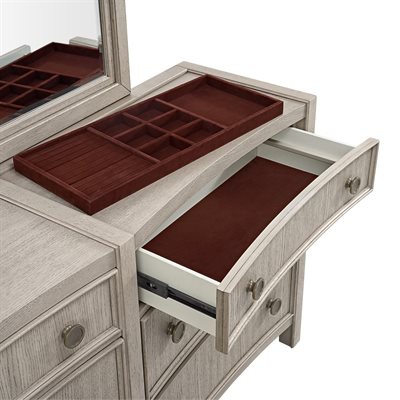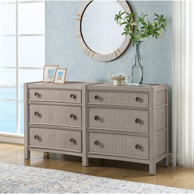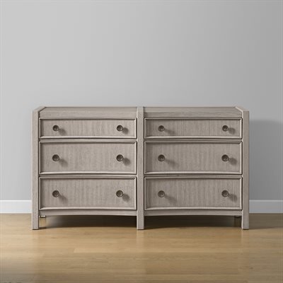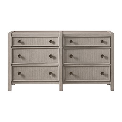 Breezy and refined, the Coronado bedroom collection brings the tranquility of waterside living indoors. Crafted with vertical oak veneers in a light khaki finish, each piece highlights the wood’s natural grain and soft wire-brushed texture. Framed drawer fronts, subtle concave shaping, and oversized round hardware add dimension and charm. The upholstered storage bed offers cedar-lined drawers and a built-in footboard bench, while 45mm ball-bearing guides and felt- and cedar-lined drawers on the case pieces deliver lasting strength and smooth performance, making Coronado as enduring as it is serene.