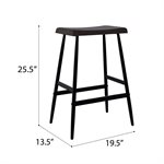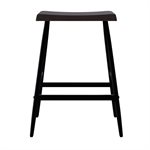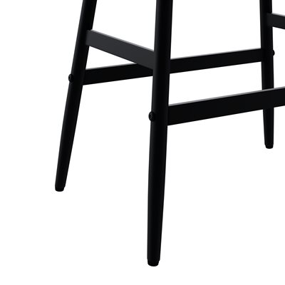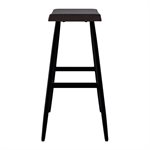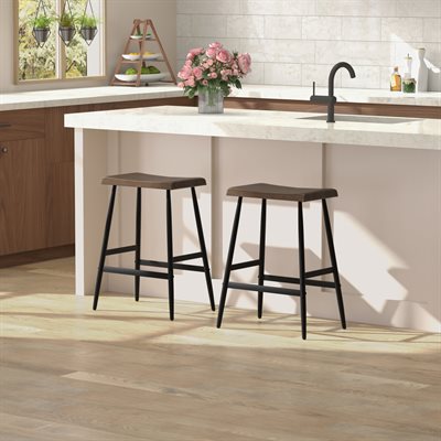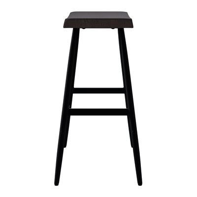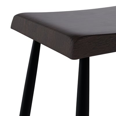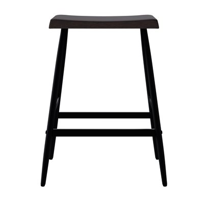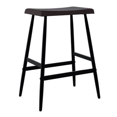 The Vernon barstool blends sculpted wood craftsmanship with clean, modern lines for a balanced, versatile look. Its counter-height design features a solid wood saddle seat shaped with gentle contours and rounded edges for comfort you can feel. A rich dark walnut finish brings out the natural character of the grain, adding warmth to kitchen islands and casual dining spaces. Slim black metal legs create a crisp contrast and are supported by stretcher bars that enhance stability and everyday durability. With its backless profile and easygoing style, the Vernon barstool offers a practical seating solution that pairs effortlessly with a wide range of interiors.