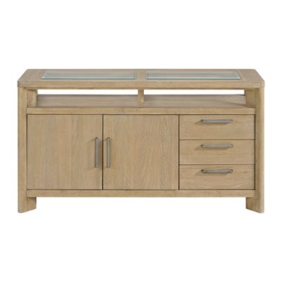 Bring the outside in with the light and airy, casual style of the Pacific Grove collection. Burnished and aged hardware accent the sand dune colored finish featuring light wire brushing, glazing, rasping, and sand-through. This collection has both an extension leg table and formal trestle table. You’ll find a perfect blend of modern, rustic, and coastal design aesthetics with the rounded shapes, neutral tones, and textural cream boucle fabric on the upholstered seats. The Pacific Grove’s casual, yet sophisticated look will bring out the best in your space.