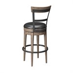 Belly up to the bar of your choice with the Benton. Options abound for the perfect spot to gather with friends and family with this casual, bar height dining collection. Randomly matched oak veneers finished in a warm, pecan brown create a laid-back appeal while hardwood solids, easy-to-maintain PU faux leather upholstery, and metal foot rails and kick plates assure the Benton collection will stand up to the rigors of everyday use.