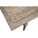 Interlude combines a rustic nature with classic portrait-back side chairs to create a French country look for today. Pine solids and veneers and American White Ash solids are brought together to craft the planked tabletops, turned legs, and fluted details. The collection includes dining height as well as gathering height pieces. The dining table features a signature butterfly leaf with a cable driven slide system for easy one-hand operation. A matching server with four drawers and two louvered doors complete this presentation. Cup pulls and exposed hand-latch rods add just the right touch of authenticity, while a soft whitewash settles in the heavily hand-distressed sandstone buff finish, adding texture to the contemporary French country collection.