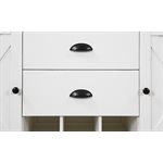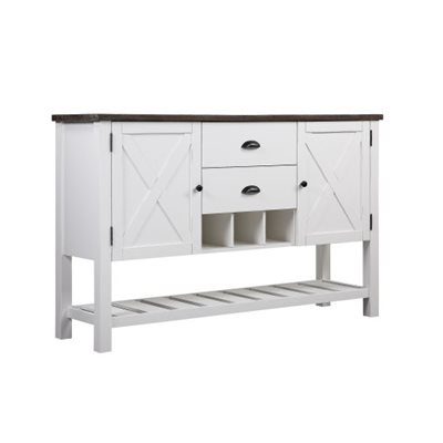 Developed with an emphasis on period authenticity, Mountain Retreat blends the strength of pine solids with the rustic texture of rough sawn timbers. Starting with a dark mocha color applied to the thick, planked table top, the two-tone finish pairs a soft, antique white to the heavy turned legs. Cross-brace elements on the seat backs and buffet doors complete the classic country style of Mountain Retreat.