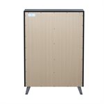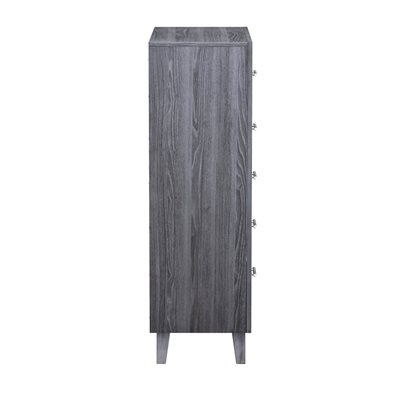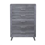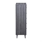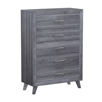 Contemporary minimalism at it’s best, the Rappa bedroom is crafted from hardwood solids with scratch resistant melamine for easy care. Well-defined shapes cut a crisp silhouette underscored by angled A-line legs. Silver-toned bar drawer pulls shine against the warm gray tones for understated chic.