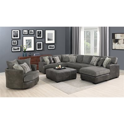 Bring a luxe elegance to your living room with the Berlin collection. This eye-catching modular collection offers a variety of seating options, bringing a custom, one-of-a-kind look to your space. Covered in a unique mix of cozy looks-like-leather and chenille fabrics, this bold, deep-seating collection combines comfort, texture, and sophistication. Personalize your configuration and style with the Berlin.