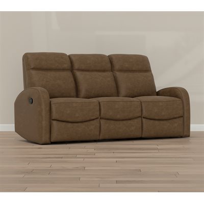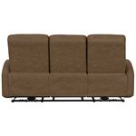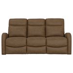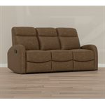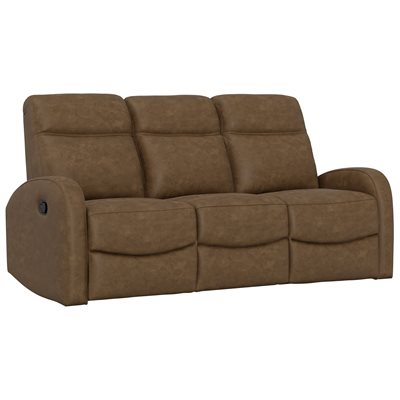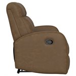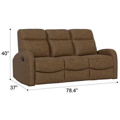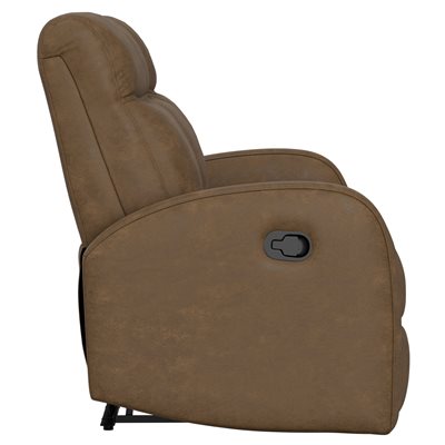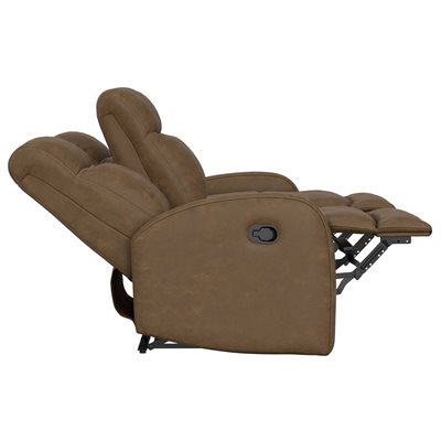 The Benjamin motion collection brings easy relaxation together with a streamlined, contemporary shape. Softly rounded track arms and tailored cushions create a balanced silhouette upholstered in a medium brown sanded PU with soft tonal variation and a subtle grain that mimics the feel of well broken-in leather. Each seat is built for lasting comfort with sinuous spring construction and individually pocketed coils that offer responsive support. Smooth manual reclining invites users to settle in at their own pace whether choosing the reclining sofa, reclining loveseat, or rocker recliner. Designed for family rooms, living rooms, and casual spaces, Benjamin pairs dependable comfort with modern simplicity for everyday lounging.