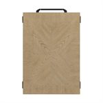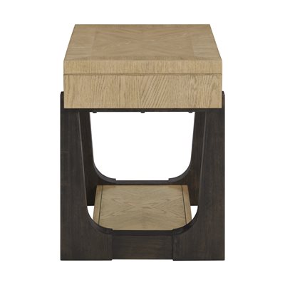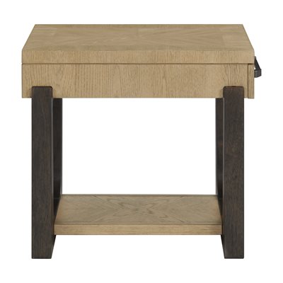 The Sutton Place occasional collection embodies relaxed contemporary style with a focus on the natural beauty of oak. Light wire-brushing enhances the tight-grain oak veneers, sturdily crafted over hardwood solids. Warm caramel tops beautifully contrast with rich cocoa legs, while a subtle diamond pattern on the table surfaces adds a touch of sophistication. Thoughtfully designed for both style and function, the collection includes a cocktail table, end table, and chairside table with a convenient storage drawer, with a lower shelf on each piece providing additional space for storage or display. A console table with optional stools offers extra seating when needed, seamlessly blending practicality with elegant design for a warm and inviting accent to your home.