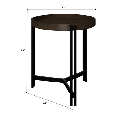 With sleek lines and modern geometry, the Huron occasional collection showcases the contemporary contrast of dark brown wood and black metal. Each tray-style top is crafted with ash veneer over hardwood solids and set on a black metal base with stylish double-rod legs. The nesting cocktail table pairs a 34.5-inch round top with a 27-inch companion table, designed to layer together as a sculptural accent or separate fully for extra surface area. The round side table continues the clean silhouette, while the chairside table adds convenience with a storage drawer and built-in USB charging port. Balanced proportions and thoughtful design make Huron an adaptable choice for living rooms, family rooms, and open-concept spaces.