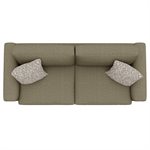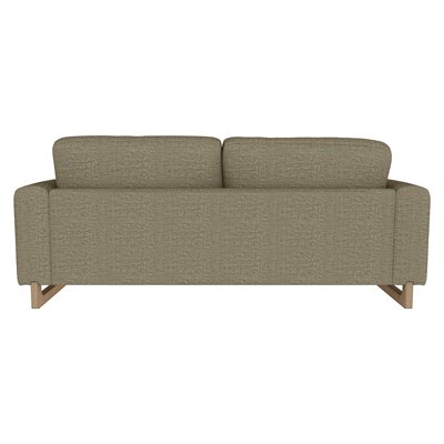 Sutton Place sets a tone of ease and elegance, pairing sculptural details with a relaxed contemporary feel that’s all about balance. Upholstered in olive green chenille, the fabric reflects light with a soft, shifting luster. Loose, reversible back cushions and sinuous spring seating offer easy, supportive comfort, while accent pillows in textured boucle blend creamy off-white and warm beige for added softness and contrast. A light caramel wood trim wraps the base, traces the track arms, and continues into open sleigh legs that add a refined architectural touch. Casual yet composed, Sutton Place fits seamlessly into living rooms that mix sophistication with a laid-back feel.