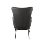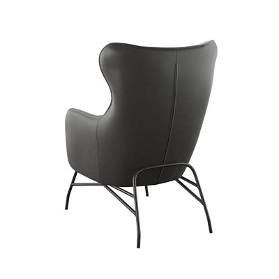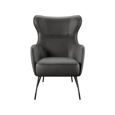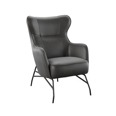 When looking for comfort and sophistication in your den or study, the Franky accent chair fits the bill. A soft and supple faux leather with piped edges and stitching detail sits atop black metal legs creating a contemporary look that is rich and inviting.