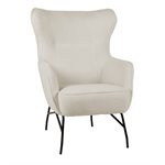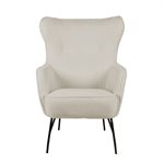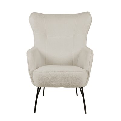 When looking for comfort and sophistication in your den or study, the Franky accent chair fits the bill. A soft and cozy cream boucle fabric with piped edges and stitching detail sits atop black metal legs creating a contemporary look that is rich and inviting.