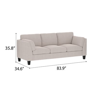 Inspired by easygoing elegance, the Elsbury collection brings a clean, contemporary point of view to your living space. With its tailored silhouette, inset track arms, and gently tapered solid wood legs, this group offers a modern take on timeless design. Fixed cushions keep the look neat while maximizing comfort, supported by sinuous spring construction and individually pocketed coil seats. Offered in a curated palette of fresh fabric options, the Elsbury collection is a simple, stylish way to update your home.