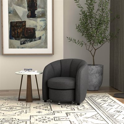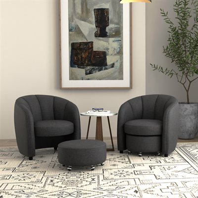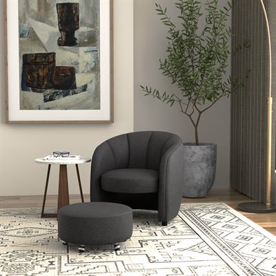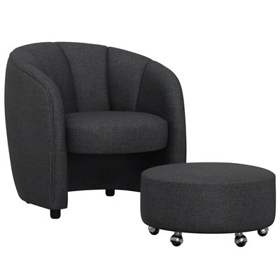 ACCENT CHAIR & OTTOMAN W/CASTORS - CHARCOAL