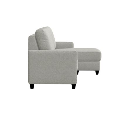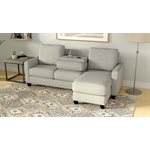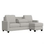 Masquerading as a straightforward chofa and ottoman, the contemporary Dawson disguises easy comfort. The chaise can switch between the left or right side so you don’t have to commit to a one room layout. Tuck blankets and pillows into the storage ottoman at the ready for curling up cozy. Push it up against the loveseat to instantly create additional leg space while you drop down the center back cushion to reveal two cupholders and USB-A and -C chargers just waiting for you to binge watch your new favorite show. Snuggled up in a textured gray fabric, Dawson is the ultimate in casual, effortless style with convenience.