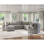 The Analiese collection gives the standard sectional an upscale update by adding a chaise and a conversation corner on the opposite end. Pops of subtle color and pattern in the accent pillows add dimension to the classic textured upholstery. Combining the best of both worlds, you have your choice of a spacious chaise for lounging, an inviting cuddler for curling up, or both! The transitional Analiese collection will look beautiful tucked into a cozy corner or defining an open concept space with a style that will last for years to come.