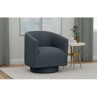 Get the chic, yet contemporary feel you’re looking for with the Brylee accent chair. The swivel base is stylishly upholstered to match the rest of the chair, while the barrel-shaped back invites you in. A well-tailored line of welting around the chair adds definition and a fashionable touch. Whether being the center of attention in your space, or matching with your existing décor, the three cool-toned fabric colors of the Brylee chair will add an easy update to your space.