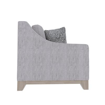 The neutral, sophisticated Kora collection layers together beautiful tailoring and textures. The irresistibly soft, subtle herringbone upholstery combines with the weathered, solid wood base to make an enchanting look. Sloped arms and smooth lines allows the Kora collection to pair just as effortlessly in a formal living room as it does in a relaxed family room or casual living space.
