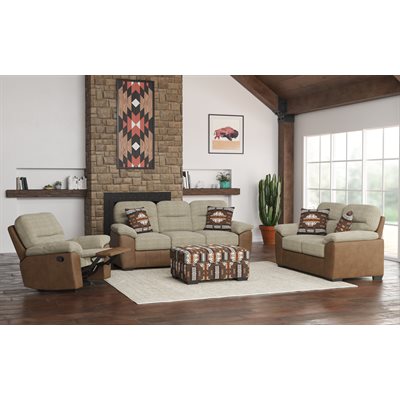 If comfort is at the top of your list, look no further than the southwest inspired Porter collection. The mix of variegated fabric and sleekly mottled faux leather are just the right two-toned combination, while a stitched seaming detail adds dimension and interest. Oversized cushions and luscious pillowtop arms add to the perfectly paired duet in the Porter collection.