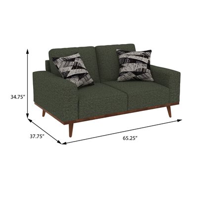 LOVESEAT W / WOOD BASE & 2 PILLOWS - OLIVE