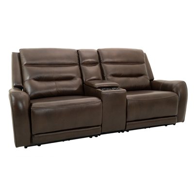 3PC - DUAL POWER CONSOLE LOVESEAT W/ 2 RECLINERS - BROWN LEATHER