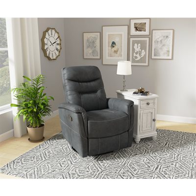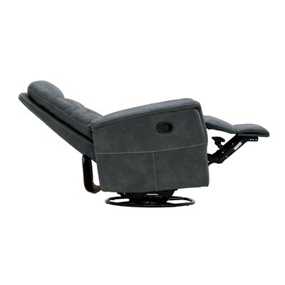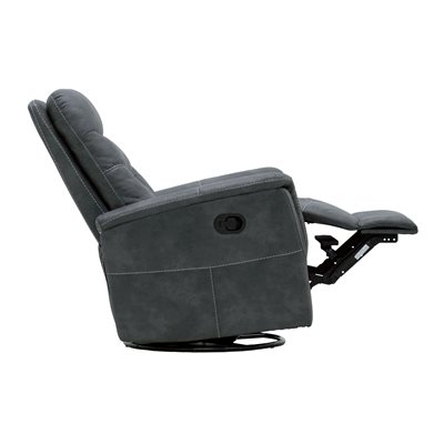 Easily refresh your home with the space-friendly, gliding recliner Danyon. This smaller-framed design is large in comfort with its deep seat and expertly placed back tufting. Contrast stitching wraps this piece to present a well-tailored look, while the padded arms will make you feel right at home. Revitalize with an easy pull of a lever to recline into soft, faux leather that reminds you to stay a while.