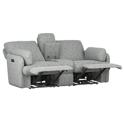 POWER CONSOLE LOVESEAT W / HIDDEN REMOTE STORAGE - SPECKLED GRAY