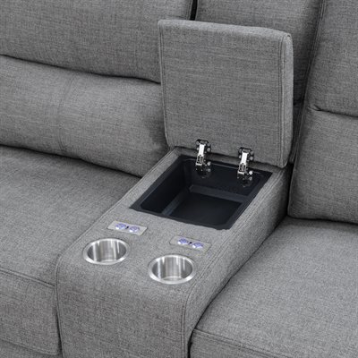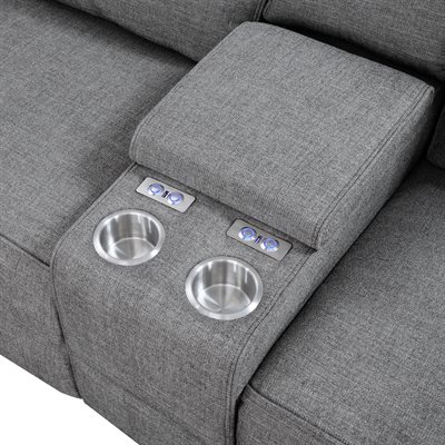 The Medford sectional has it all—a storage console with cup holders, three power-recline seats, and seating for the whole family. The neutral palette and contemporary design elevate the style of your home and make this the perfect place to entertain or just lie back and relax.